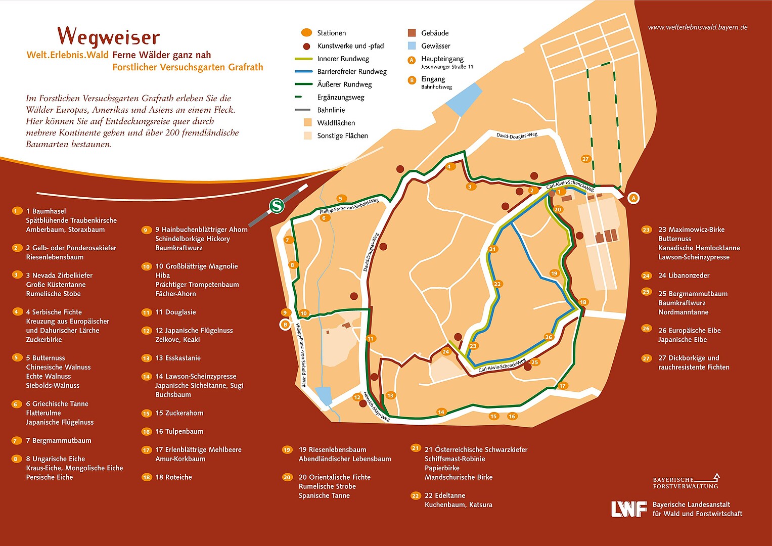"Im Forstlichen Versuchsgarten Grafrath erleben Sie die Wälder Europas, Amerikas und Asiens an einem Fleck. Hier können Sie über 200 fremdländische Baumarten bestaunen. Ein stattliches Exemplar ist beispielsweise unser – mit etwa 130 Jahren – ältester Mammutbaum ..." weiter auf www.welterlebniswald.bayern.de.