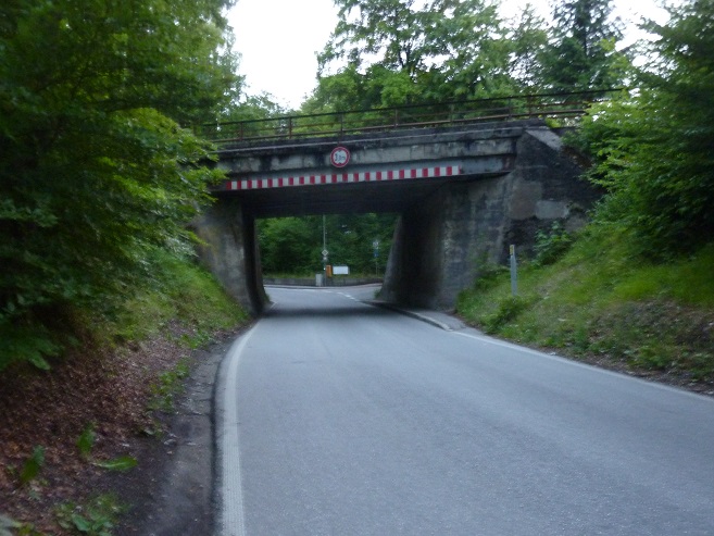 Die Unterführung (UF) war schon immer eng, und für LKW zu niedrig. (Tempo 30, beschilderte Höhe: 3,80m)