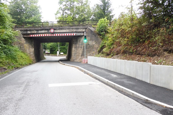 Nachdem es einen heftigen Unfall mit einer Fußgängerin gab, entschloß man sich endlich, den Gehweg in der UF zu verbreitern sowie eine wechselseitige Ampel für die Kfz zu installieren (2016).